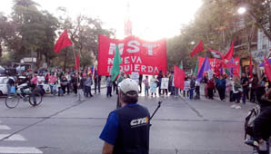 Junto con otras fuerzas de izquierda, los manifestantes recorrieron la plaza 25 de Mayo con canticos y ruido, en alusión al día de los trabajadores que se festeja mañana primero de mayo.