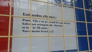 Hoy el local está completamente cerrado, con su frente empapelado y un cartel de agradecimiento a la clientela. “Punto Fijo y su personal les agradecen habernos elegido por más de 20 años. Nuevamente gracias!!!”, escribieron.