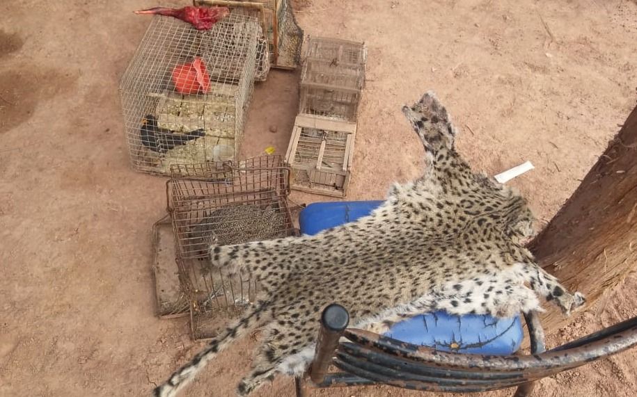 En el domicilio encontraron 3 ñandú adultos, 7 liebres mara, 1 perdiz copetona, 1 benteveo, 1 zorzal, 1 soldadito, todos vivos. También fueron encontrados partes de una mara muerta y el cuero de un gato montés.
