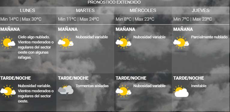 La temperatura máxima prevista para mañana es de 30 grados con ráfagas de viento del sector Oeste, pero el martes descenderá a los 24 con probabilidad de tormentas en horas de la noche.