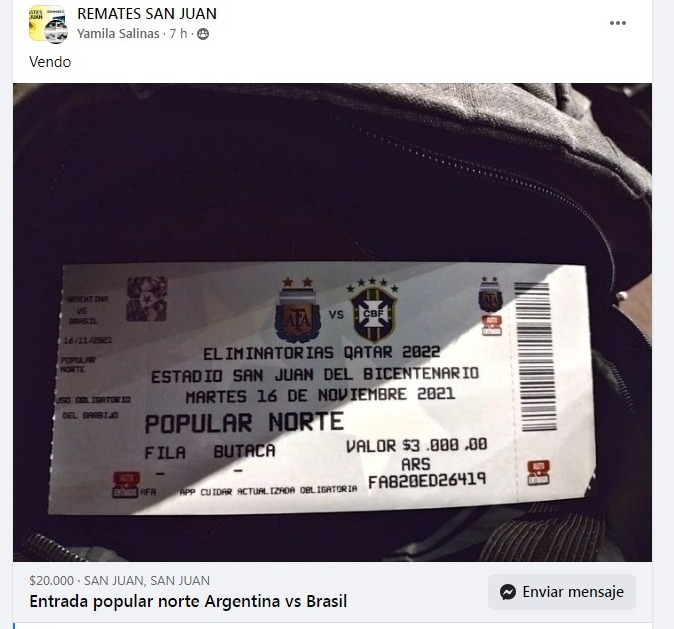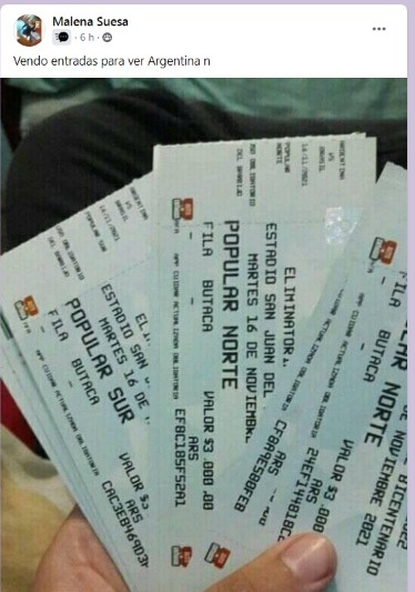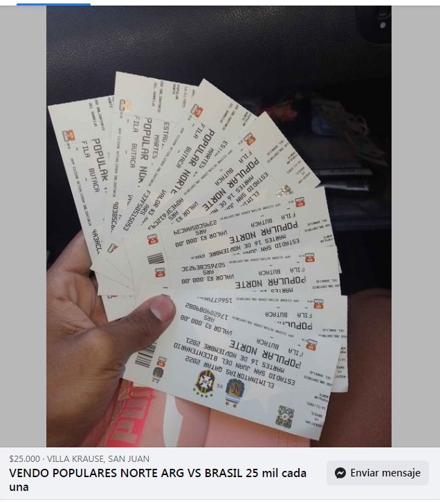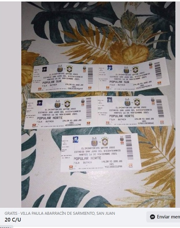 Populares de $3.000 se ofrecen en $15.000, mientras que Plateas Este de $5.000 se están ofreciendo hasta en $40.000, es decir, nueve veces más de lo que costaban.