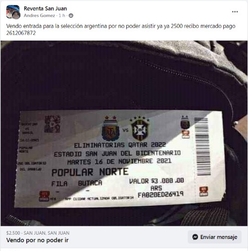 Tampoco queda claro el tema de la autenticidad de las entradas que se ofrecen. Lo cierto es que quien acceda a adquirir a través de esta metodología, deberá cuidarse de no caer en engaños.