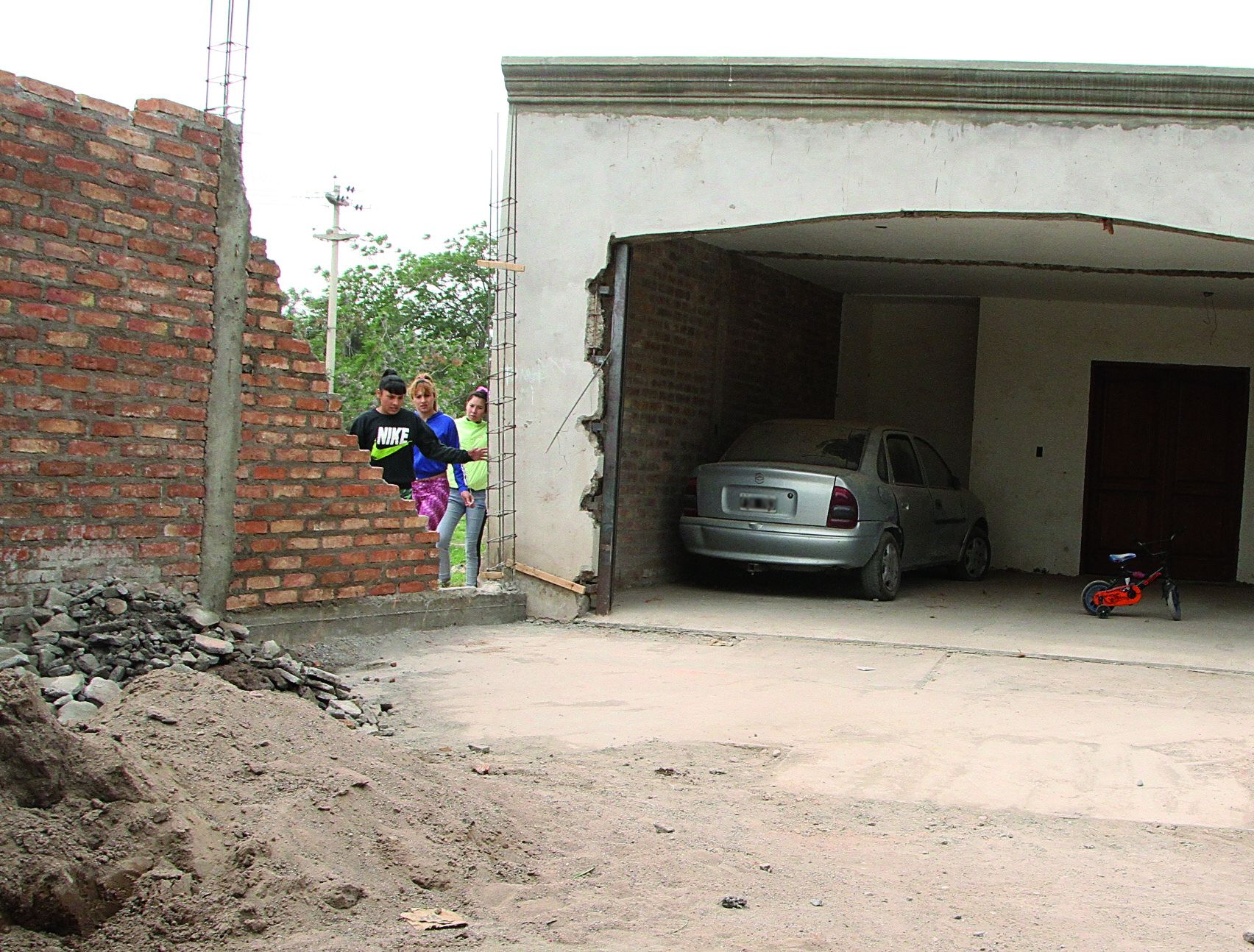 Como una puerta. El hueco que quedó en la pared es usado como una puerta de acceso. En todo momento pasa gente por ese lugar.