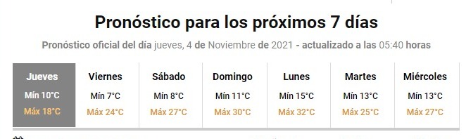 Entre sábado y lunes la máxima subirá algunos grados aunque hasta ahora el pronóstico extendido continúa marcando la presencia de días nublados.