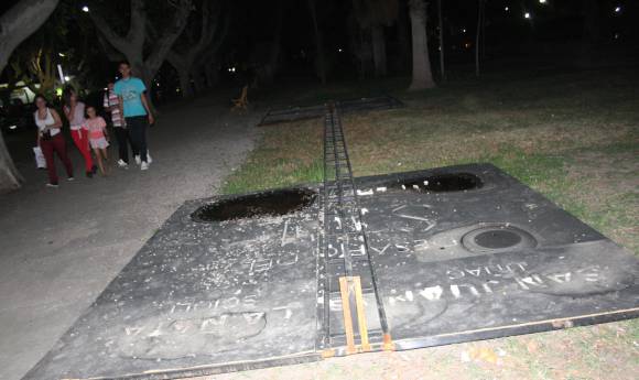 ‘De noche no se ve y eso es un peligro’, dijo Mario Valverde, que todos los días hace ejercicios en la zona. ‘Ahí estaba el stand de Scioli, donde jugaban al fútbol’, dijo Martín Oro otro visitante de este espacio verde.