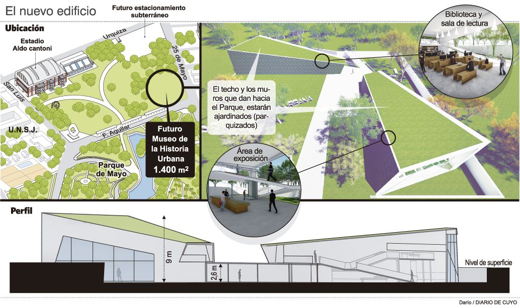 Antes, este centro cultural, se llamaba Museo de la Memoria Urbana y estuvo primero en la exestación San Martín y luego se mudó a una casa céntrica, que es donde está en la actualidad, porque se construyó la Plaza del Bicentenario. Si bien en un principio se barajó la posibilidad de no volver a instalar el simulador del terremoto de magnitud 7,8 grados de la Escala Ritcher que sacudió San Juan en el “44, este equipo sí volverá a ser la atracción de los visitantes del nuevo edificio.