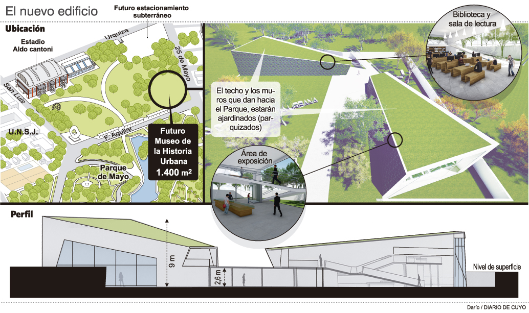 La construcción de un nuevo edificio de la Historia Urbana surgió como un proyecto para darle vida a un sector del Estadio Abierto y del Parque de Mayo que estaba en desuso. Ahí se encontraba el velódromo, una tribuna y parte del Boletín Oficial.