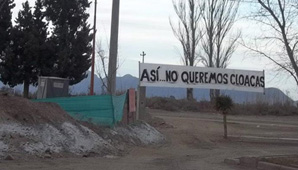 San Juan, 15 de agosto.- El mensaje es claro: "Así no queremos cloacas". En las últimas horas, vecinos del Barrio Fronteras Argentinas, de Jáchal, decidieron colocar un pasacalle en señal de protesta por la forma en que trabaja la empresa que realiza las obras.