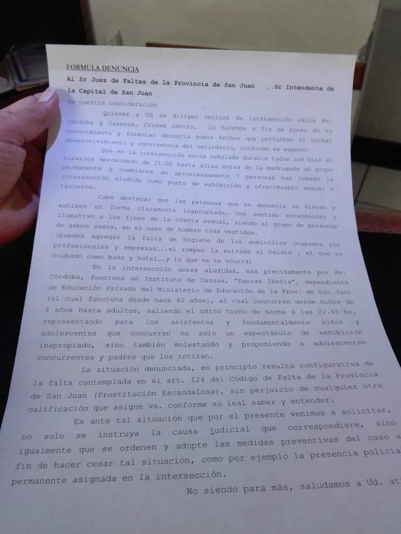 El hombre de 72 años  aclaró que la problemática es de años atrás, pero empeoró en el último tiempo por la gran cantidad de travestis. "Muchos son violentos y tienen un terrible nivel de exhibicionismo. Se ponen en medio de la calle y hasta obstaculizan el tránsito. Es una zona residencial, donde viven muchos niños", enumeró.