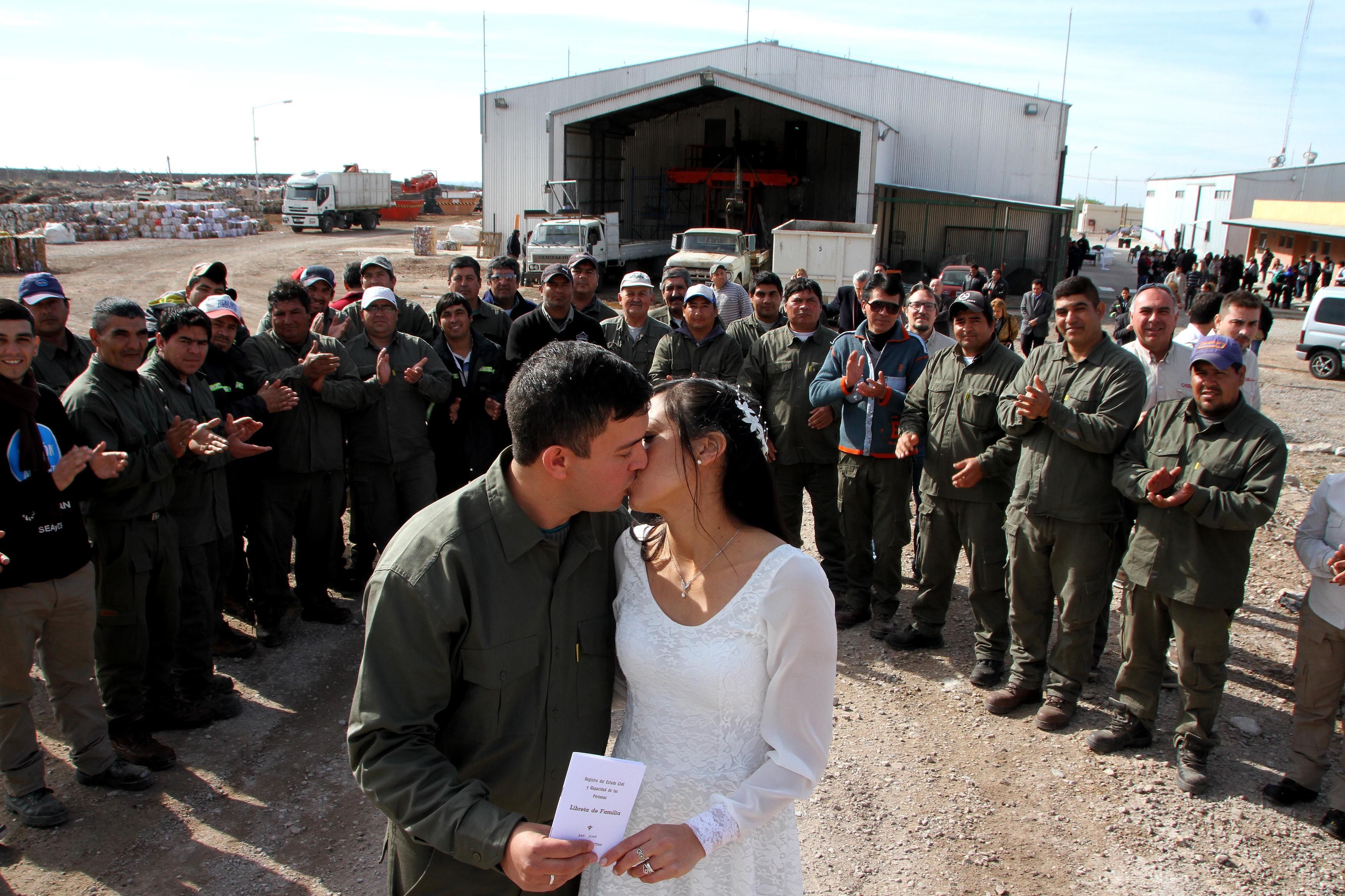 En julio de 2017, Cecilia Soto (32 años) y Nicolás López (28) fueron noticia porque se casaron en la planta de tratamiento de residuos sólidos, donde Nicolás es empleado.