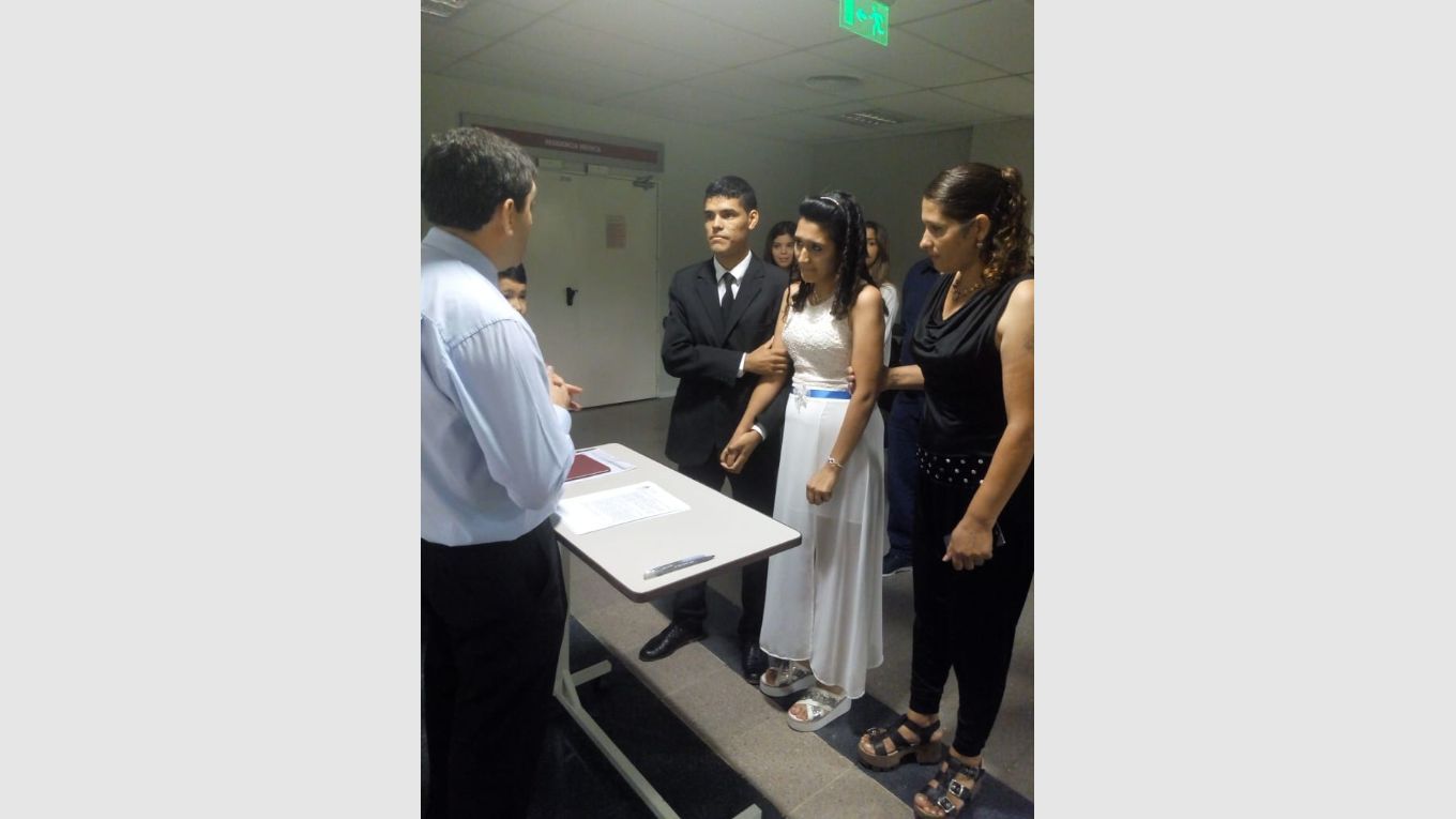 Si bien convivían desde 2011, Cecilia (la romántica de la pareja según lo reconocen los dos) sorprendió un día a Nicolás en el trabajo -con la complicidad de compañeros y autoridades- para pedirle casamiento. Nicolás no sólo dio el sí, sino que acordaron que fuera en el mismo lugar de trabajo donde realizarían la ceremonia civil, que sucedió el 14 de julio. "Para nosotros también es especial porque es el lugar de donde llevamos el pan del día para nuestra familia", reconoció Nico, quien es menos demostrativo con su pareja. "Ella está siempre pendiente de mí y de los chicos, Santiago, Bautista y Mateo. Yo soy más distraído pero cuando le mando por ahí un poema, la sigo sorprendiendo", agregó con una sonrisa.
