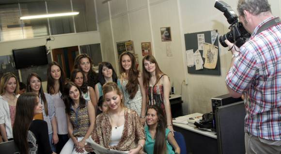Luego del recreo, las candidatas se trasladaron a la Redacción de este diario para la segunda etapa de fotos. Lo hicieron entusiasmadas, ya que nunca antes la habían visitado. Ni bien ingresaron a la zona fueron a saludar a Claudio Leiva, el periodista de la sección Política que hace un par de días fue amenazado por un ex militar represor. Fue uno de los pocos momentos en que se mostraron serias, aunque esa actitud duró sólo por unos momentos porque luego hasta que se sentaron frente a las computadoras simulando ser periodistas y escribir sobre la elección de la Reina Nacional del Sol 2013.