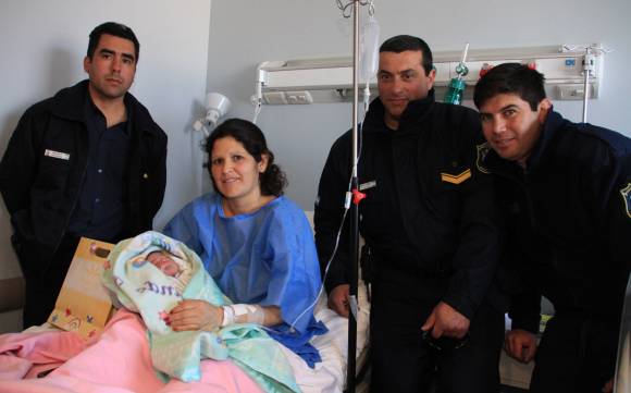 Los tres efectivos habían llegado hacía minutos a la comisaría con la intención de resguardarse del frío tras la ronda nocturna, ayer. Lo que no sospechaban era que en contados minutos iban a tener que transformar la recepción en una sala de partos para que allí mismo, sobre un banco de madera, naciera Daira Alexia Vizcarra. Tanto la beba, que pesó 2,200 kg, como su mamá están en el Hospital Rawson, sanas.