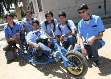 Un grupo de alumnos de sexto año de la EPET 5 creó un triciclo que tiene como particularidad el haber aprovechado partes de motos y de karting que fueron adaptadas a su diseño. La unidad tiene un chasis tubular que fue pensado y soldado por los estudiantes, a la vez que adaptaron una horquilla, manubrio y rueda a la parte delantera. Luego, colocaron un motor de una moto 150 cc en la parte trasera y crearon un tren trasero a partir de un karting.