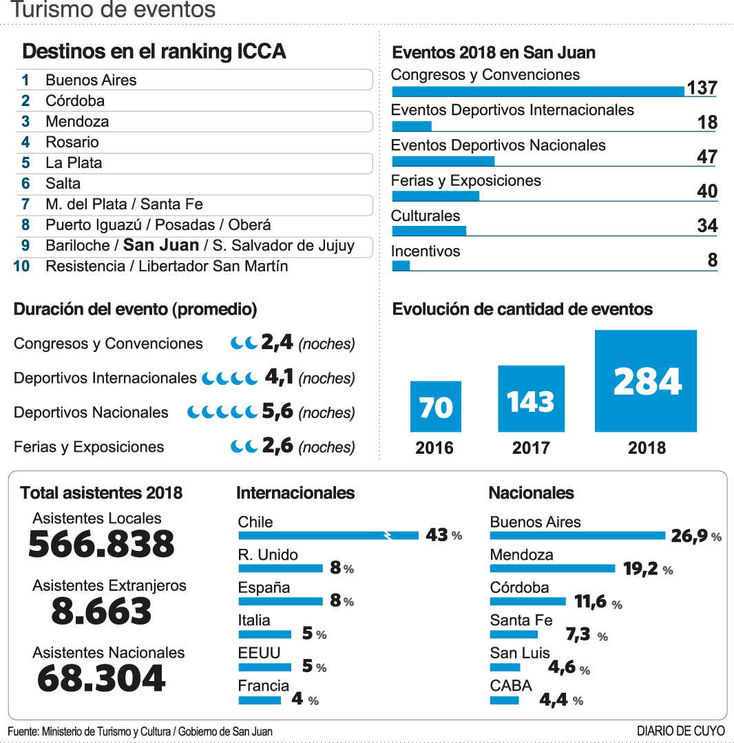 ICCA considera en su estudio a San Juan como una de las 28 ciudades que son destinos en Argentina para realizar turismo de reuniones, a nivel internacional. Y el impacto económico el año pasado por esta actividad fue de 882,5 millones de pesos.