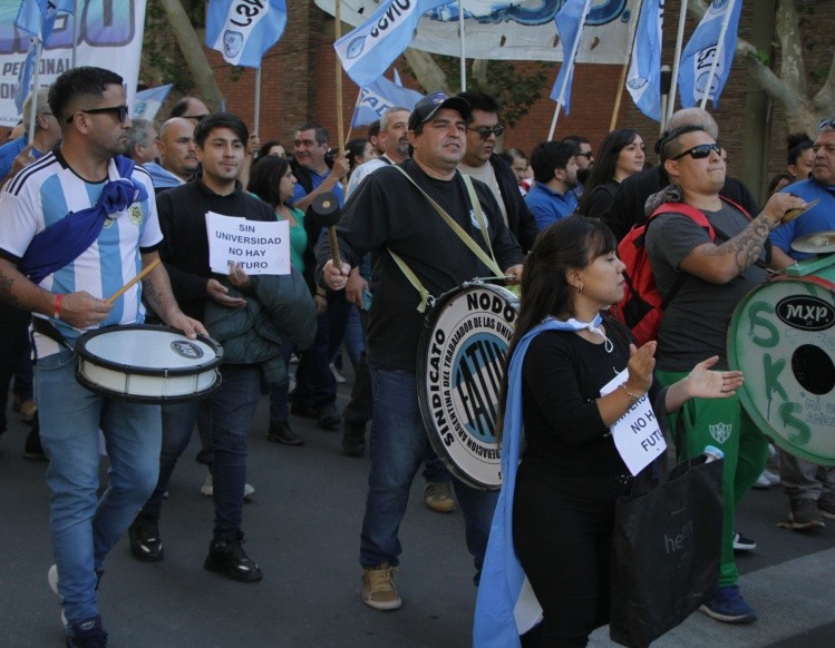 Los manifestantes no sólo expresaron su reclamo por el recorte presupuestario a la universidad con su presencia. Todos marcharon portando carteles y grandes pancartas en defensa de la educación pública. Tampoco faltaron las banderas y camisetas albicelestes.