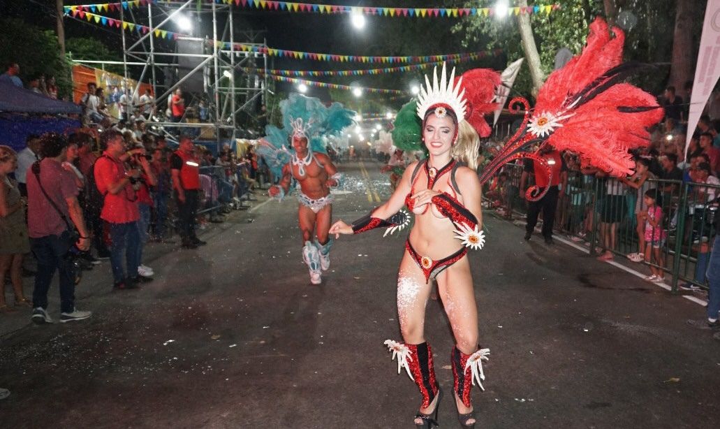 Sensualidad. Con mucha sensualidad y alegría, las bailarinas del Carnaval de Gualeguaychú se lucieron en Ullum.