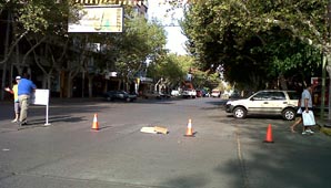 Se pudo observar a un grupo de trabajadores podar algunos árboles y también realizar otras tareas, por eso el tránsito de la avenida a la altura de Mendoza estuvo cortado.