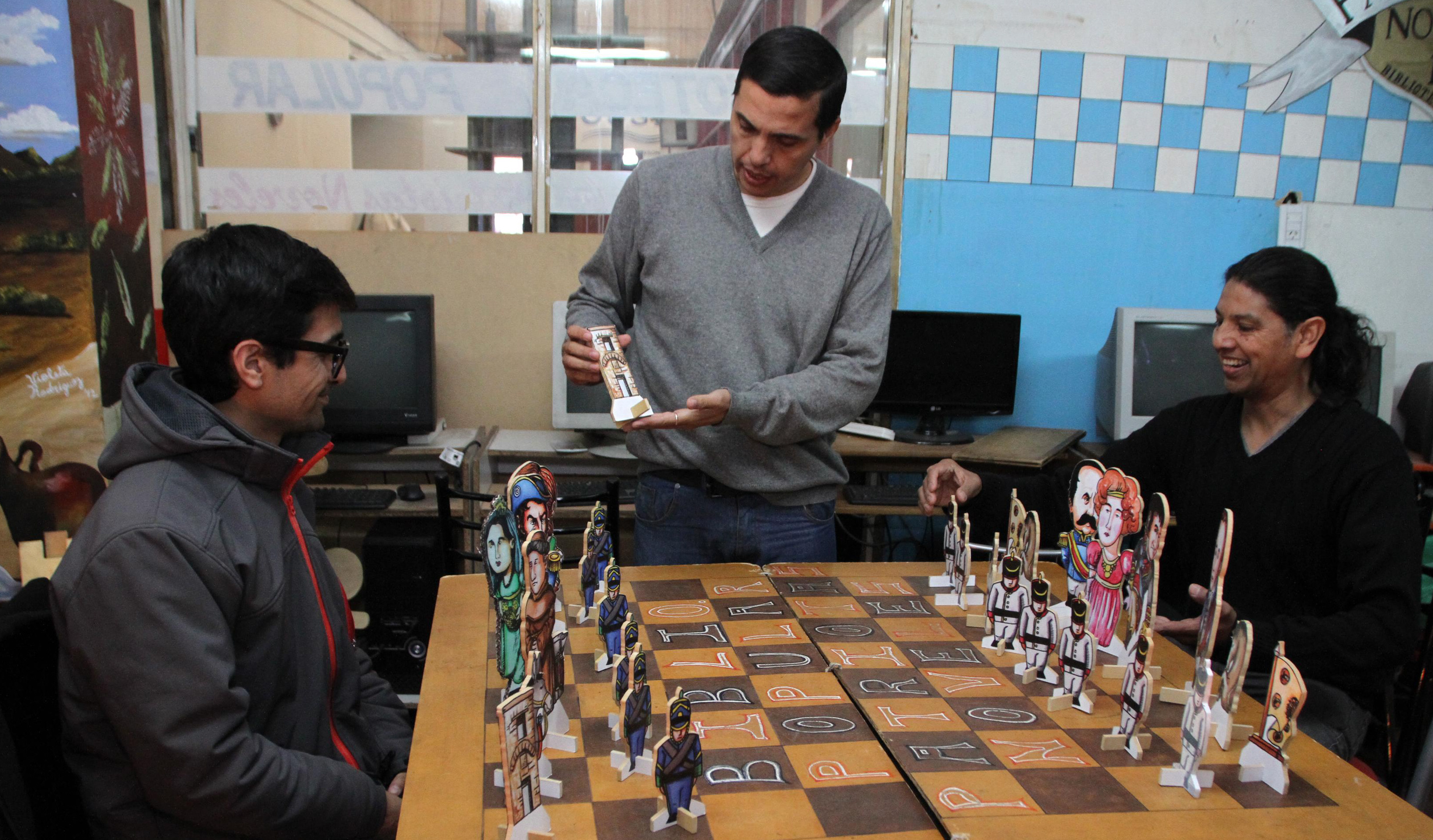 Los miembros de la Biblioteca Popular La Sociedad de Patriotas Noveles, de Rawson, continúan con las propuestas creativas para conmemorar el Bicentenario del Cruce de los Andes. El año pasado hicieron el primer libro infantil sobre la gesta sanmartiniana y ahora crearon un ajedrez gigante donde cada pieza representa un personaje o elemento ligado a este hecho. Lo usan para enseñarles a los alumnos de las escuelas primarias del departamento acerca de este hecho histórico. Ya visitaron 6 instituciones.
