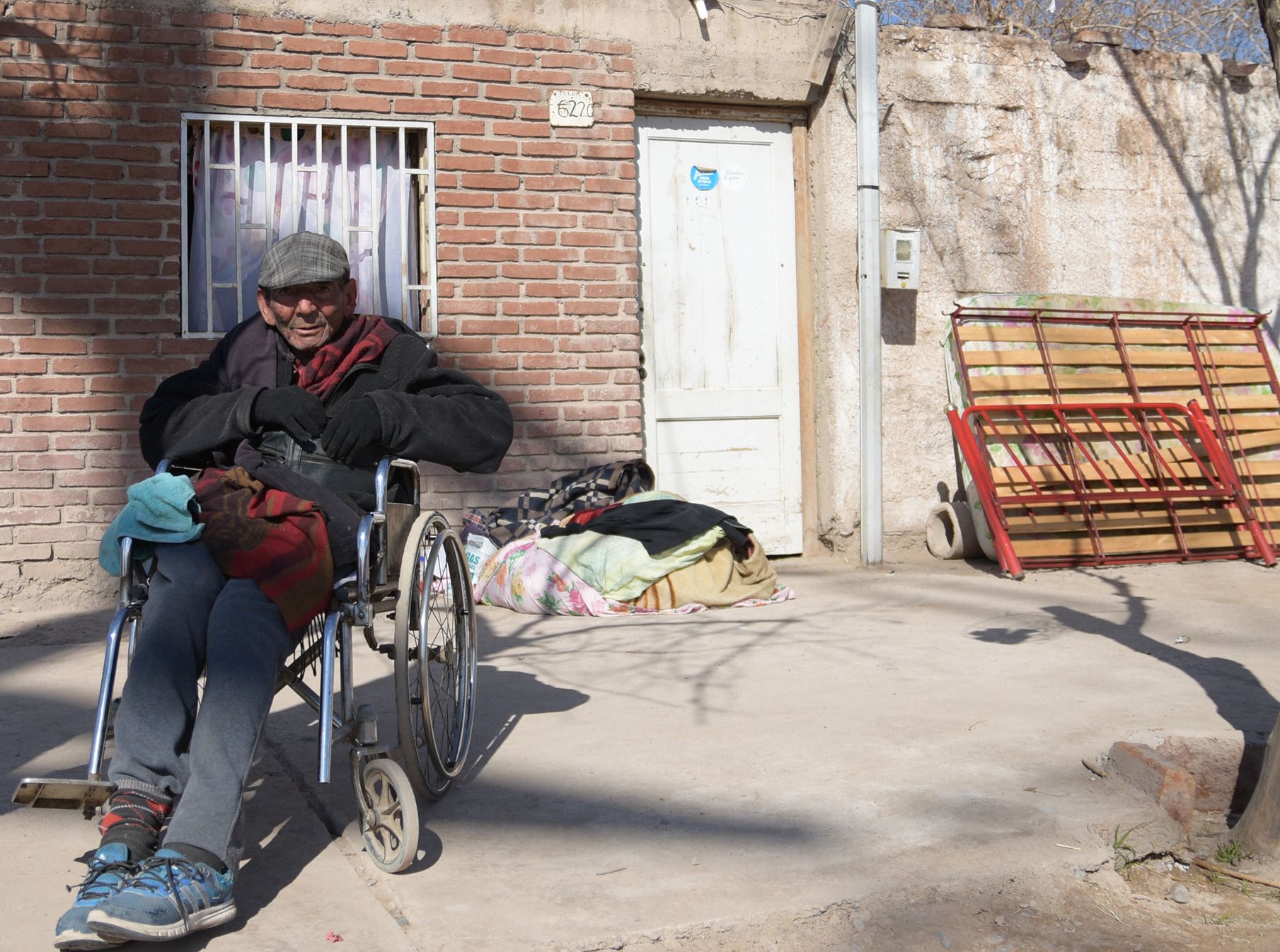 Con guantes, una boina y una bufanda, trató de hacerle frente al frío. Dijo que en la noche le fue imposible dormir, porque estaba "congelado", a pesar de que se metió debajo de un techito que hay en el costado de la casa. Segundo Alanís tiene 77 años, no puede caminar y contó que pasó la noche en la calle, porque fue sacado de su vivienda por una hijastra que denuncia violencia de género, abuso sexual y que la vivienda es de ella. Esta dura puja familiar llevó a que el hombre ahora no tenga dónde vivir. Este caso sucede en la Villa Obrera, en el departamento Chimbas.