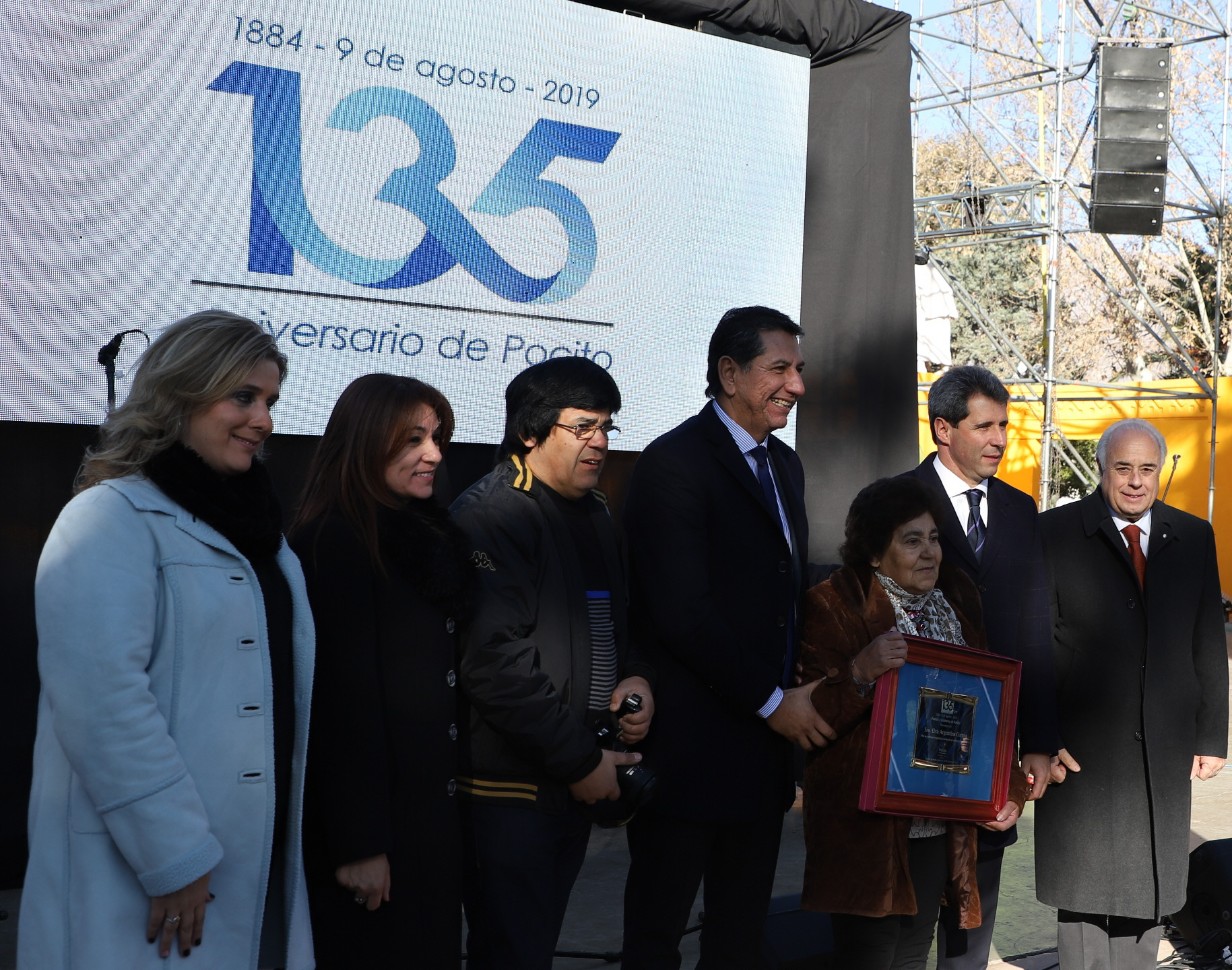 Ayer Pocito celebró su 135to aniversario y el acto conmemorativo incluyó hasta la distinción de vecinos ilustres. Se realizó en la plaza departamental y contó con la participación del gobernador Uñac, quien junto al intendente, Fabián Aballay, entregó las plaquetas a vecinos ilustres del departamento, entre ellos Elva Correa de Vargas; Blanca Agüero de Montaño; Raúl Rojo, director de FM Estelar; la presidenta del Centro de Jubilados Jardín Florido, Yolanda Julio; al dirigente vecinal Eduardo Pizarro; José Omar Leiria y Oscar Alfredo Oro, integrantes del dúo Las Voces del Abanico; inmigrantes como Luis y Ángel Palma que llegaron a Pocito para quedarse, el periodista Daniel Tejada y destacados jugadores de hockey sobre patines, como Matías Jáuregui, Ezequiel Mena y Constantino Acevedo.