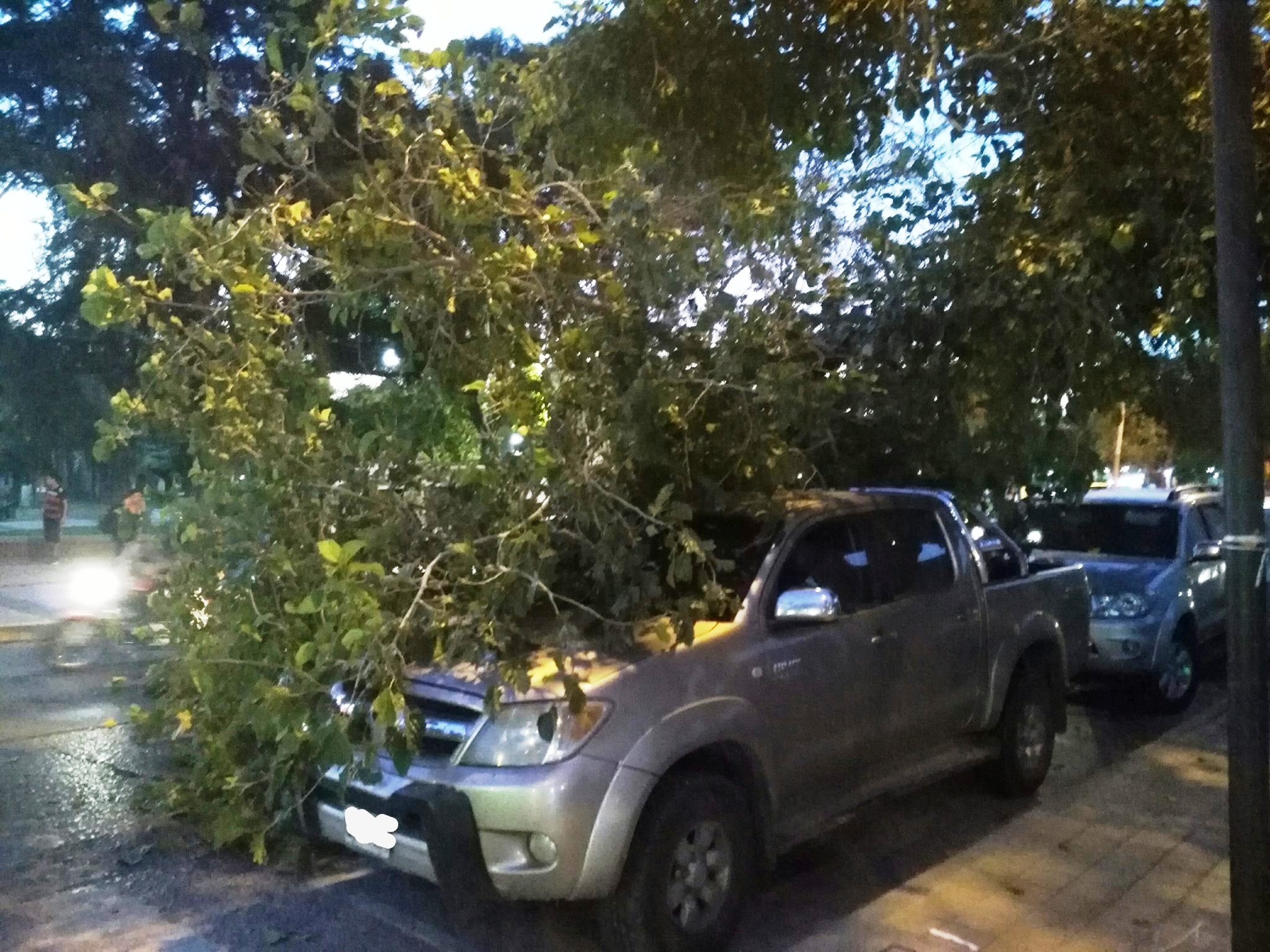 Un conductor dejó su camioneta estacionada ayer por la tarde en España y Avenida Libertador, en Capital, y cuando regresó a buscarla se llevó una espantosa sorpresa: un árbol había caído sobre su vehículo.