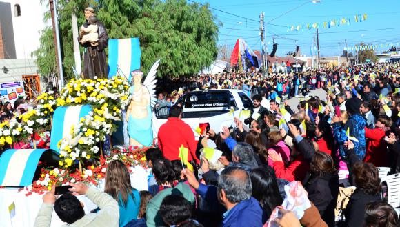 El saludo de la gente con banderitas se dio constantemente a lo largo de las 22 cuadras de recorrido. Fue una pizca colorida a una siesta de sol soñoliento, que se mezcló con algunas nubes. Ese blanco y amarillo se conjugó a la perfección con los colores de las flores que adornaron el altar en el que fue colocada la imagen del santo y con los globos y gallardetes que las familias pusieron para ornamentar sus casas. ‘Ya veníamos haciendo lo de las banderitas, pero esto año quisimos que fuera grande, que haya cientos y cientos. Todo el mundo colaboró y las donó a la parroquia’, dijo el padre Aníbal. Es más, sólo Alicia Roca (66), integrante del coro parroquial, regaló 500 banderines hechos por ella durante varias tardes.