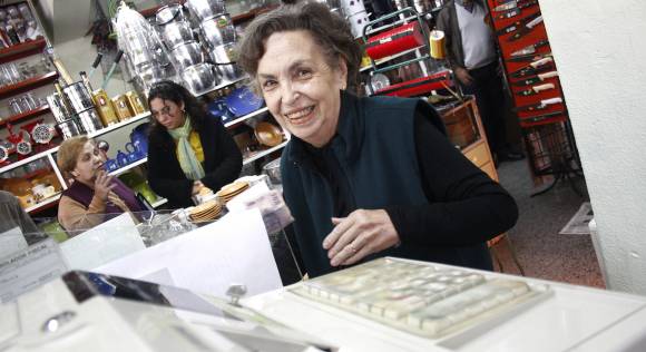 La mujer no para de marcar números, cobrar y dar vueltos. Mientras, cuenta que "este es un trabajo complicado, hay que atender bien a la gente, pero sin descuidarse. Si supiera todo lo que nos han robado". También dice que "este es un trabajo de hormiga. Hay que sacar con cuidado cada cosa de porcelana, vidrio y cristal y limpiar pieza por pieza, día por medio, para que todo esté impecable".