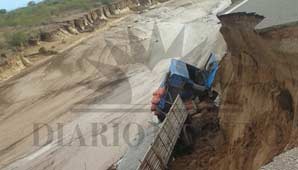 San Juan, 9 de febrero.- La fuerza de la creciente ocurrida anoche en Caucete, justo en el límite provincial, destrozó parte de la calzada de la ruta 141 por lo que un camión cayó cuando transitaba por esa zona.