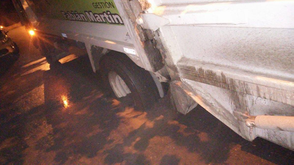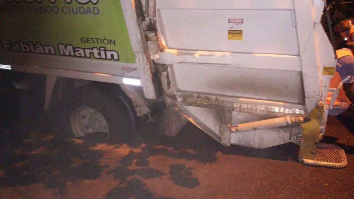 Los vecinos del barrio Sargento Cabral, de Rivadavia, registraron el incidente que padeció un camión de la Municipalidad de Rivadavia. Según los testigos, el gran rodado transitaba por calle Posta de Yatasto antes de Coll cuando quedó atrapado en un pozo lleno de agua.