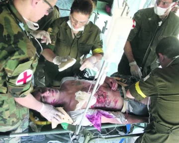 Simultáneamente, los médicos atendían sin respiro a los heridos que llegaban en ambulancia al hospital de campaña. Algunos eran señalados como casos de código amarillo y necesitaban asistencia menor. Otros integraban la categoría de código rojo, estaban inconscientes y necesitaban terapia. Y uno de los accidentados llegó con código negro. "El paciente tiene fractura de cráneo con pérdida de masa encefálica. Cuando se trata de una catástrofe, a pesar de que están vivos, estos pacientes son irrecuperables y pasan a la zona de moribundos. Se atiende sólo a quienes tienen verdadera chance de sobrevivir", comentó uno de los médicos del Hospital Militar Regional de Mendoza.