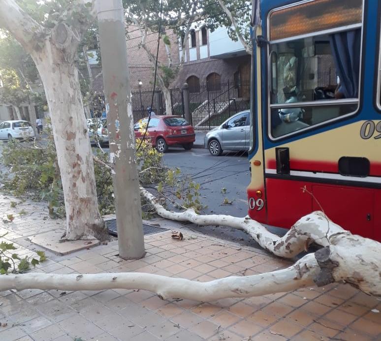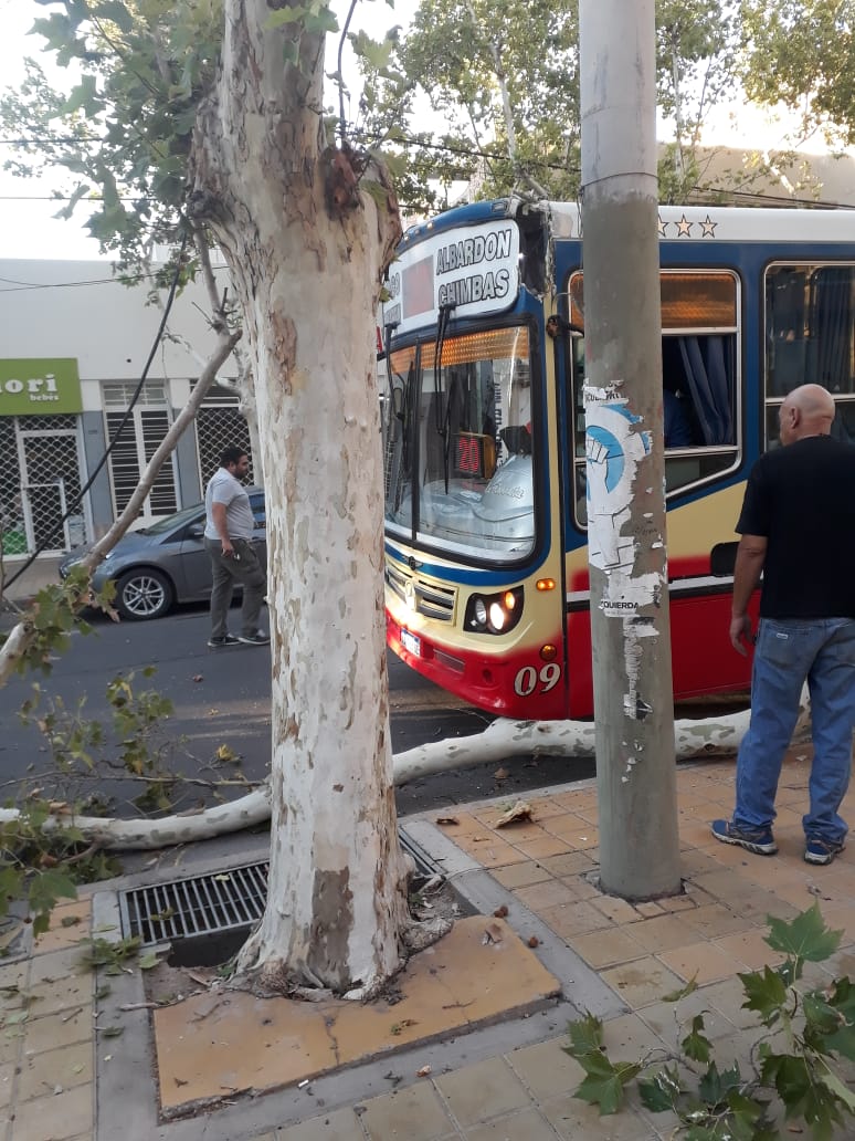 El árbol, de importantes dimensiones, fue arrancado de raíz y cayó sobre parte de la vereda y la orilla de la calle, justo al lado del micro de la empresa Albardón.