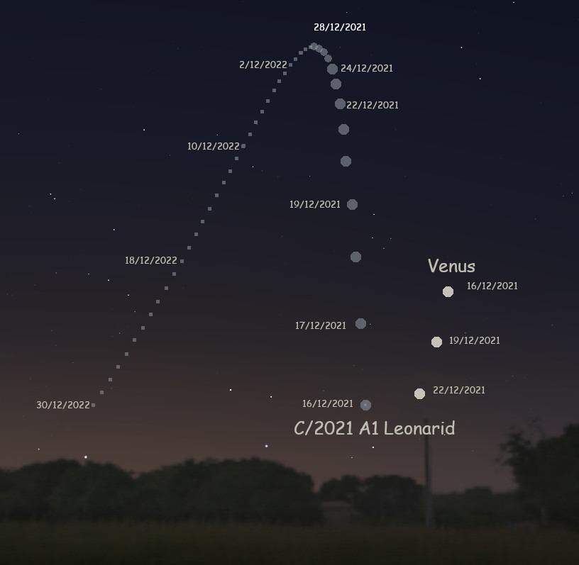Leonard (C/2021 A1) fue descubierto el 3 de enero de este año por el astrónomo Gregory J. Leonard, investigador principal de la Universidad de Arizona. En ese momento, se encontraba a la altura de Júpiter. Se trata de una roca formada por hielo, polvo y gas, procedente de la nube de Oort.