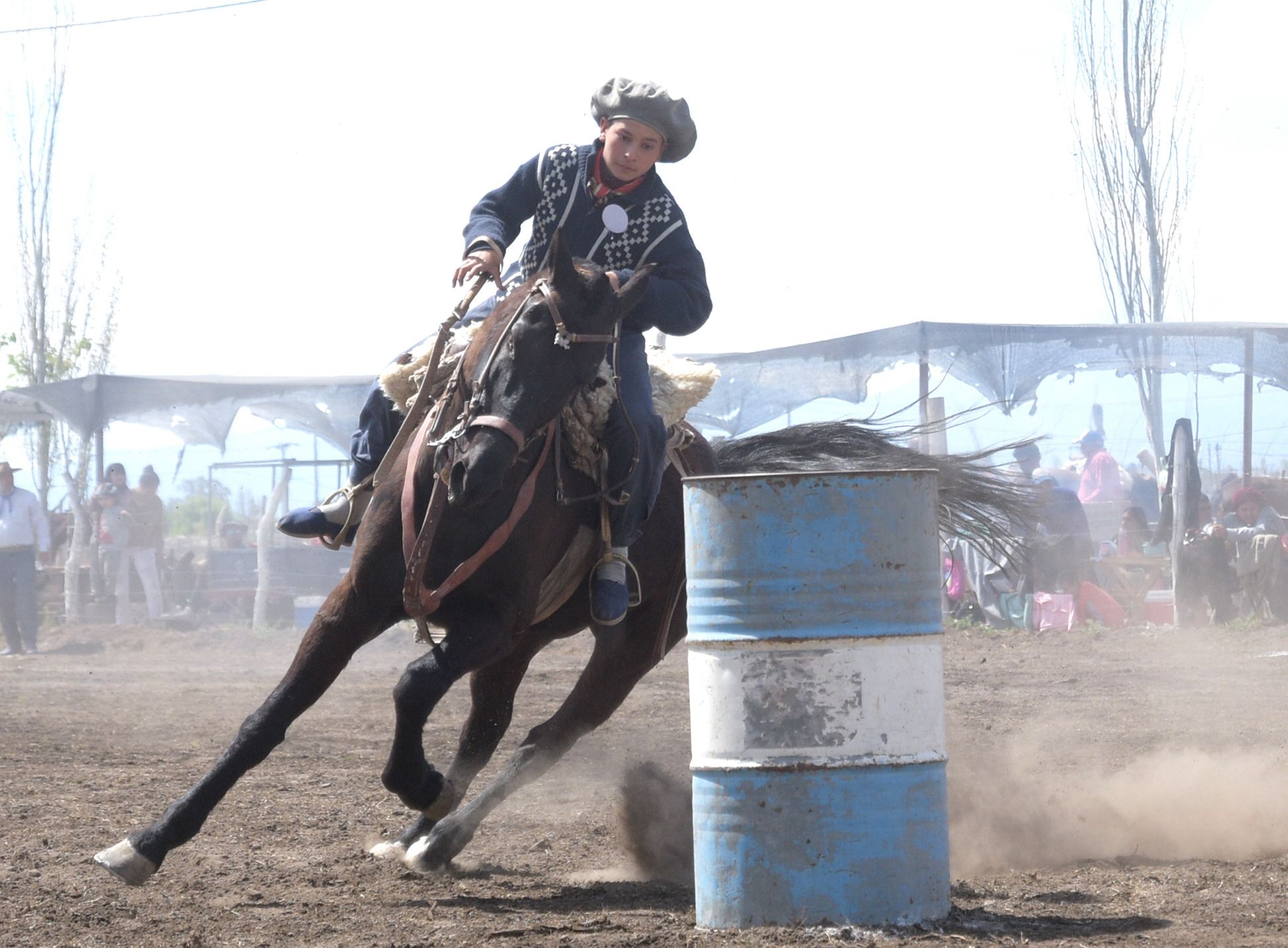 El juez dio la señal y los chicos galoparon a toda velocidad para poder hacer un 8 entre los tachos y llegar lo más rápido posible donde los esperaban sus compañeros para seguir la posta. La gente los aplaudió de pie porque compitieron con la misma garra y profesionalismo que los adultos.