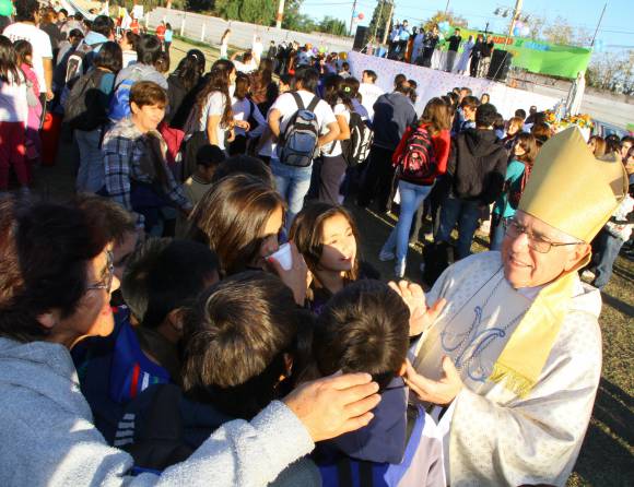 Terminada esta puesta en escena comenzó la misa, a cargo de Monseñor Alfonso Delgado. Y los chicos participaron de la misma con igual entusiasmo que al comienzo de la peregrinación, pese a que llevaban más de cuatro horas participando de esta manifestación de fe.