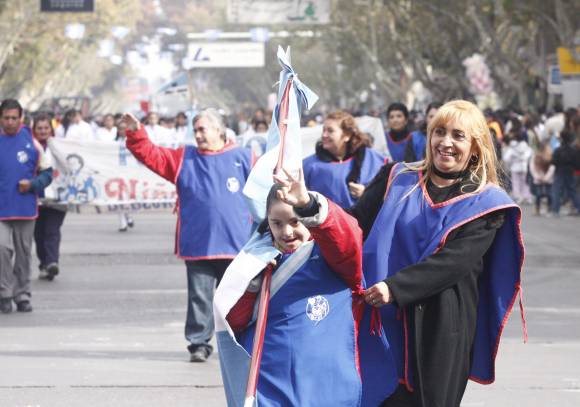 Las vallas de seguridad contuvieron a la gente que, con banderas celestes y blancas y escarapelas , asistieron a la fiesta patria. El desfile comenzó pasada las 12 y las escuelas de educación especial fueron las encargadas de romper el hielo. Con el sol que aparecía de a ratos, la Escuela Juan Padilla de 9 de Julio fue una de las primeras instituciones educativas que pasó frente al palco que estaba ubicado entre Catamarca y Sarmiento. En sillas de ruedas o guiados por los profesores, los alumnos de las escuelas especiales fueron los más aplaudidos. De manera descontracturada y mirando hacia todos lados, varios chicos se acercaron a saludar al gobernador José Luis Gioja.