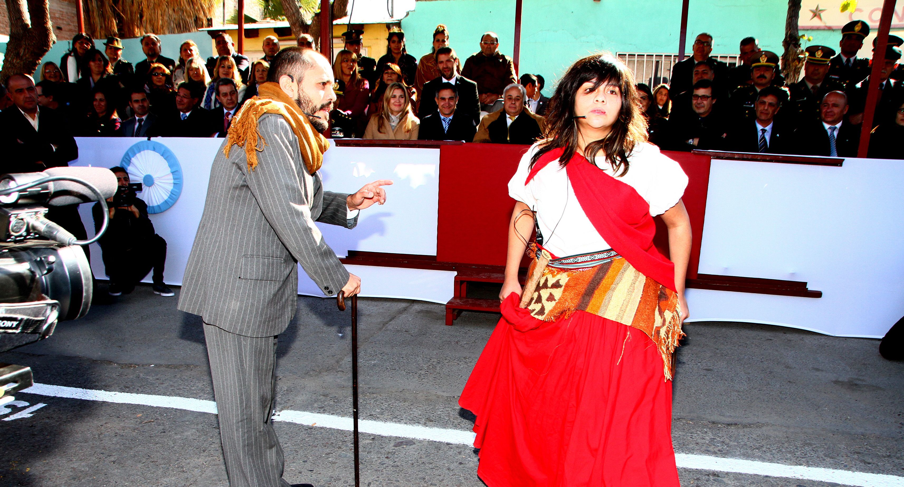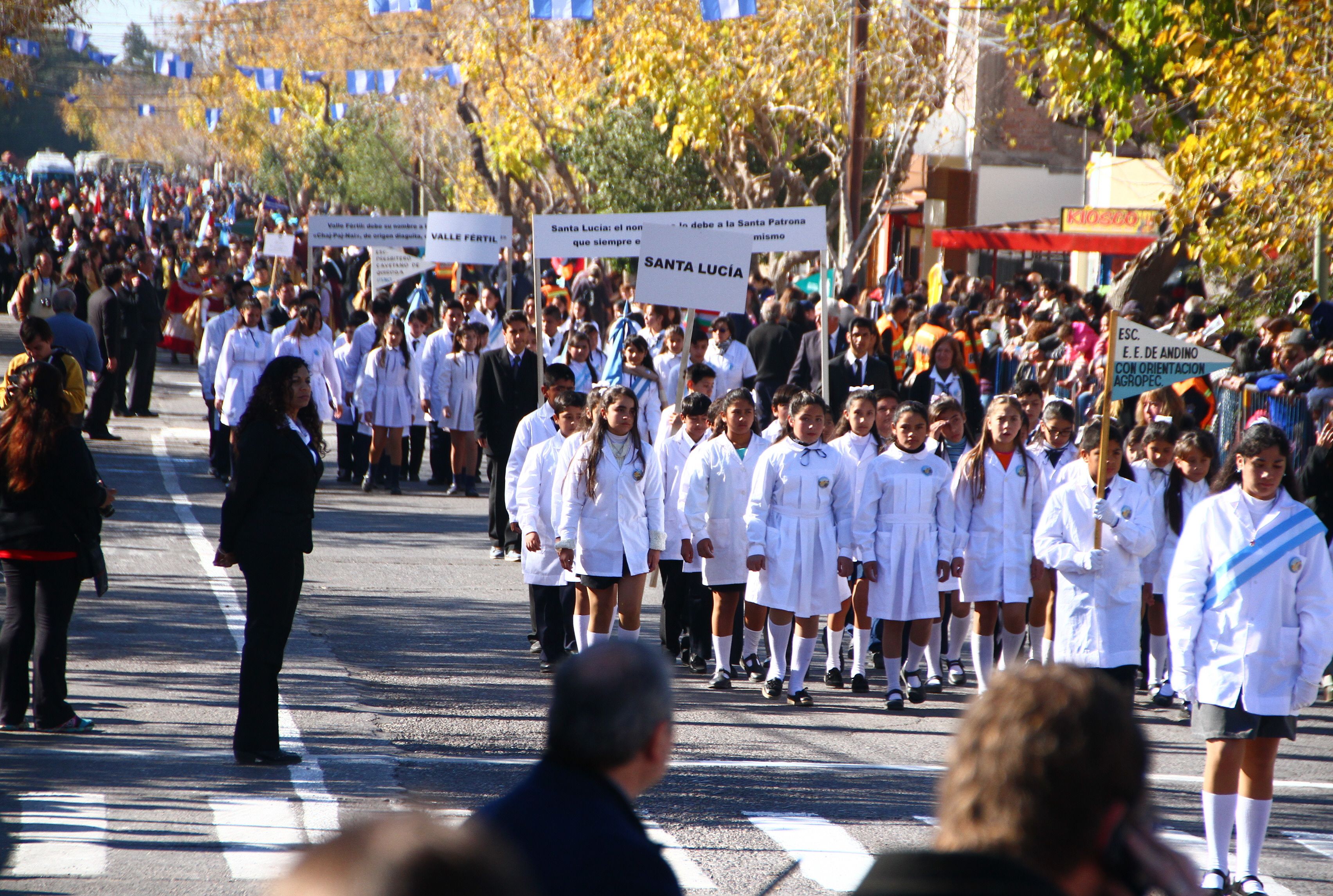 Luego de esta teatralización comenzó el desfile donde continuó el repaso por la historia. Por primera vez participaron escuelas de toda la provincia en esta celebración, encabezadas por un cartel con el nombre de cada departamento y el significado del mismo. Así el público aprendió, por ejemplo, que Chimbas proviene de la lengua quichua y significa ‘terreno al margen del río’.