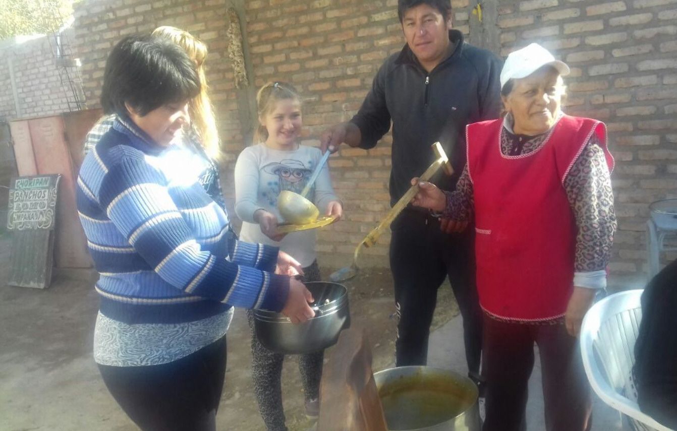 En Campo Afuera, Albardón, un grupo de familias preparó un locro para unas 200 personas que luego repartió gratis para festejar la Fundación de San Juan. La iniciativa fue de Carlos Riveros, a la que se sumaron otros vecinos de la zona.