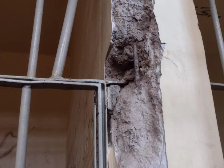 El sujeto daño la pared donde se encuentra el marco de hierro de las rejas y provocó que se desprendieran varias piezas de cemento.