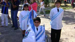 San Juan, 15 de diciembre.- No es fácil encontrar hechos que llegan al corazón sin decir ni una palabra, pero la historia de Luciano Nicolás Amaya es una de ellas. El niño de 11 años padece de una discapacidad conocida como “Distrofia Muscular de Duchenne” y perdió la capacidad motora. El martes pasado no fue un día más en la vida de la familia Amaya, su hijo recibió la bandera provincial de la escuela Amable Jones.