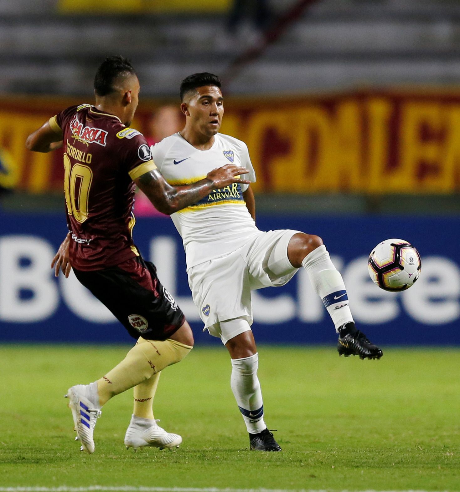La sorpresa, sin embargo, no hizo mella en el ánimo de los jugadores boquenses, que se lanzaron furiosamente en pos del descuento, con Nahitan Nández enarbolando la bandera del fervor y Zárate la del fútbol. Y sobre los 43 minutos llegó el turno de Nández, que encaró por derecha evitando marcas hasta que fue derribado dentro del área por Sergio Mosquera, en una clara falta penal.