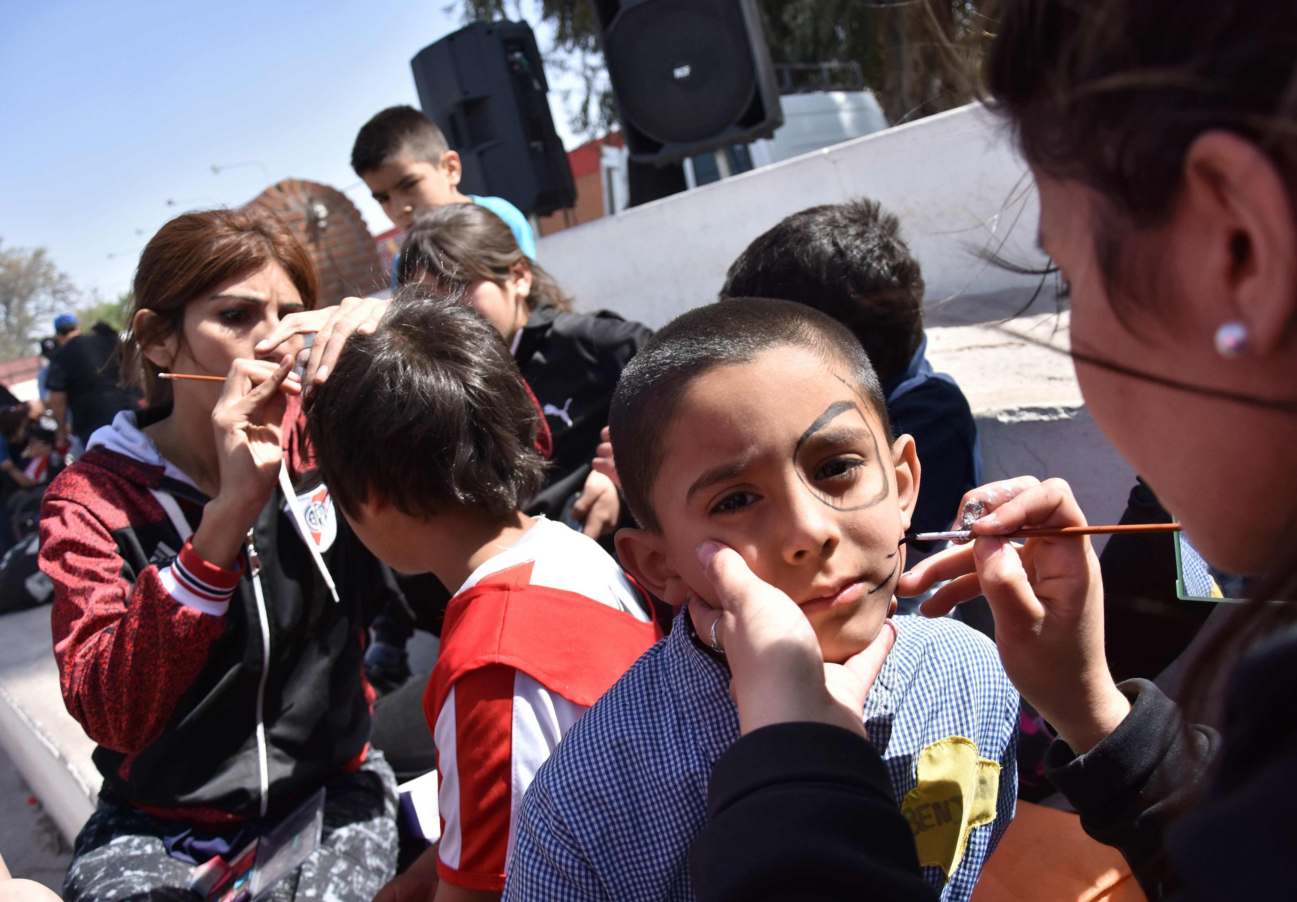 Pero no todo fue fútbol. Además hubo un sector en las tribunas donde las nenas podían maquillarse y los varones se caracterizaron de sus héroes favoritos. El playón del ingreso sirvió para que las nenas despuntaran el gusto por la zumba. El broche de oro fue un choripán.