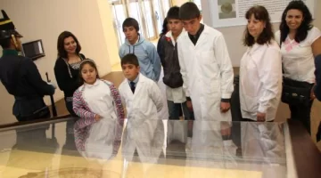 La cara de asombro de Abigail Olmos, de la escuela Paso de los Andes, de la localidad iglesiana de Malimán, sorprendió a sus compañeros y maestras. La niña llegó corriendo para contarles que ‘ahí adentro’ había dos soldados cuidando una bandera. Todos salieron rápido para ver de qué se trataba. Era la Bandera de Cabot, custodiada por soldados del RIM 22 que se encuentra en el Ala Sur del Centro Cívico. Todos los chicos se trasladaron a ese lugar para escuchar el relato de la guía sobre esta insignia. No pudieron escuchar toda la historia porque el acto estaba por comenzar. Aún así los chicos hicieron otra parada antes de volver a la Plaza Seca. Por unos instantes se quedaron observando la maqueta del Túnel de Agua Negra que está en la misma habitación donde se encuentra la Bandera de Cabot.