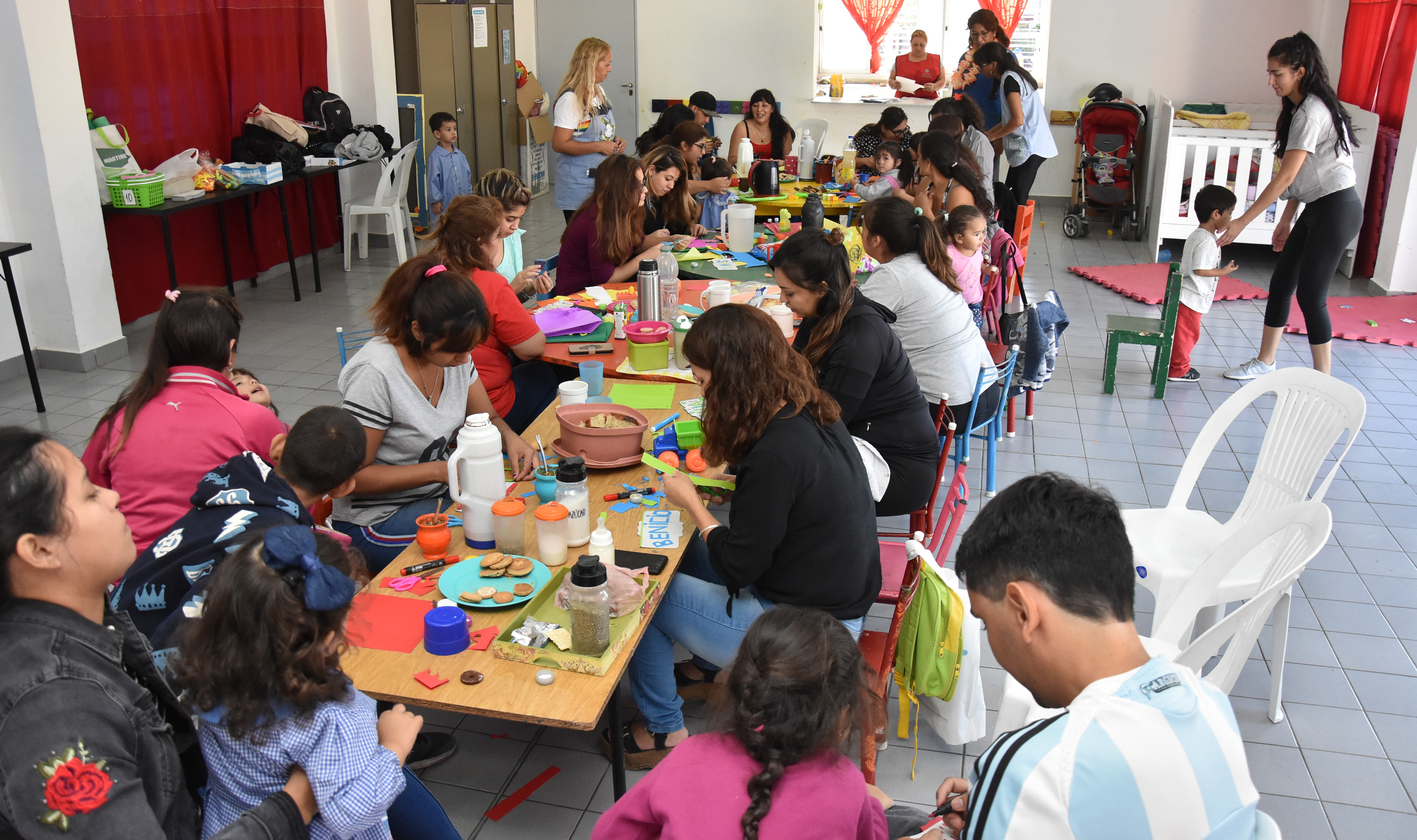 Para romper el hielo, las mamás y papás se sentaron alrededor de una mesa y, mate de por medio, comenzaron a realizar manualidades donde estamparon el nombre de sus hijos. Al comienzo, los chicos los acompañaron en esta actividad, aunque por escasos minutos. Es que prefirieron divertirse con los juguetes dispersos por toda la sala. Al verlos tan entusiasmados y divertidos, los padres comenzaron a relajarse.