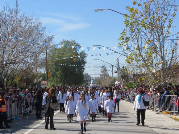 Sarmiento festejó ayer su 107mo aniversario con inauguraciones y hasta con un desfile que tuvo como protagonistas a los alumnos del departamento. A las 12, los chicos fueron los encargados de abrir el festejo por las calles principales de Media Agua. Además, inauguraron aparatos de gimnasia en una plaza y el nuevo sistema de monitoreo.