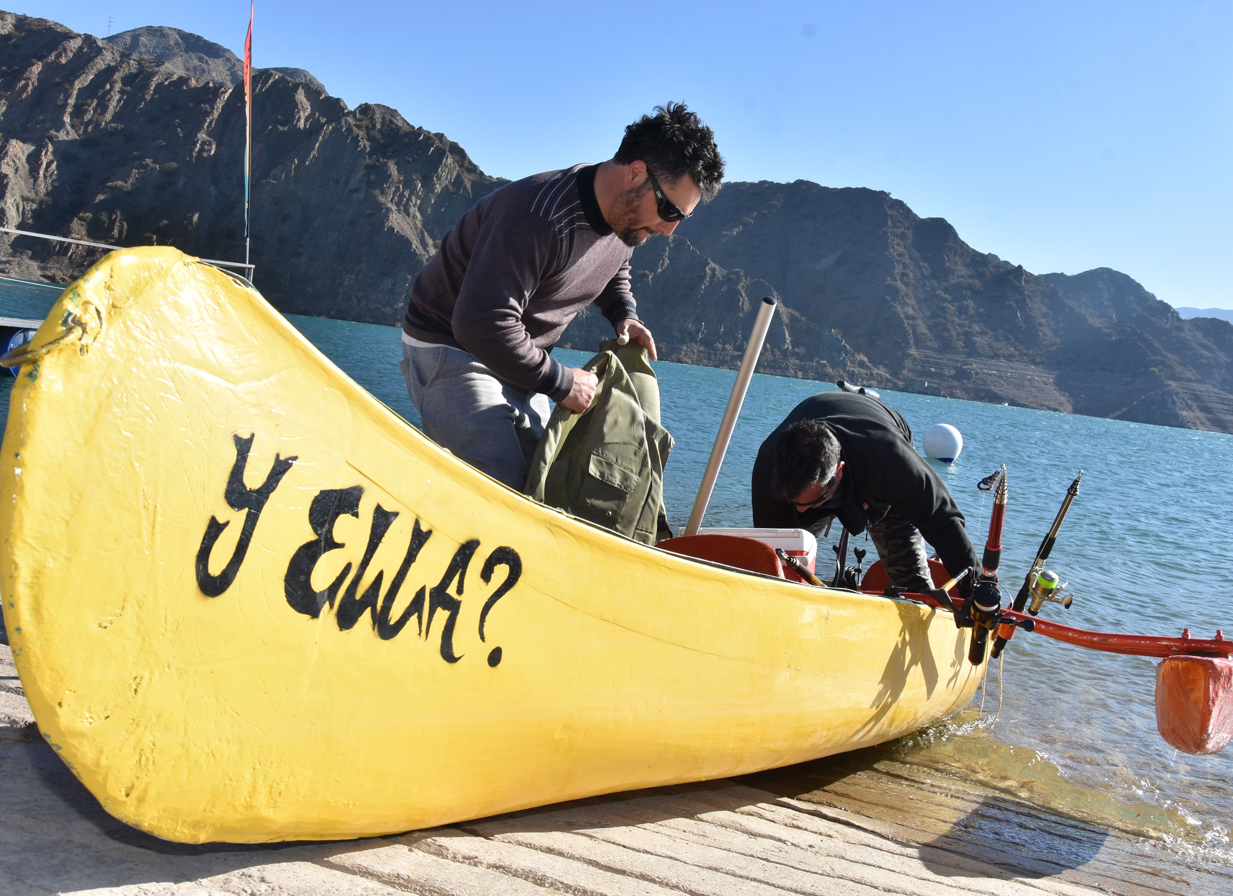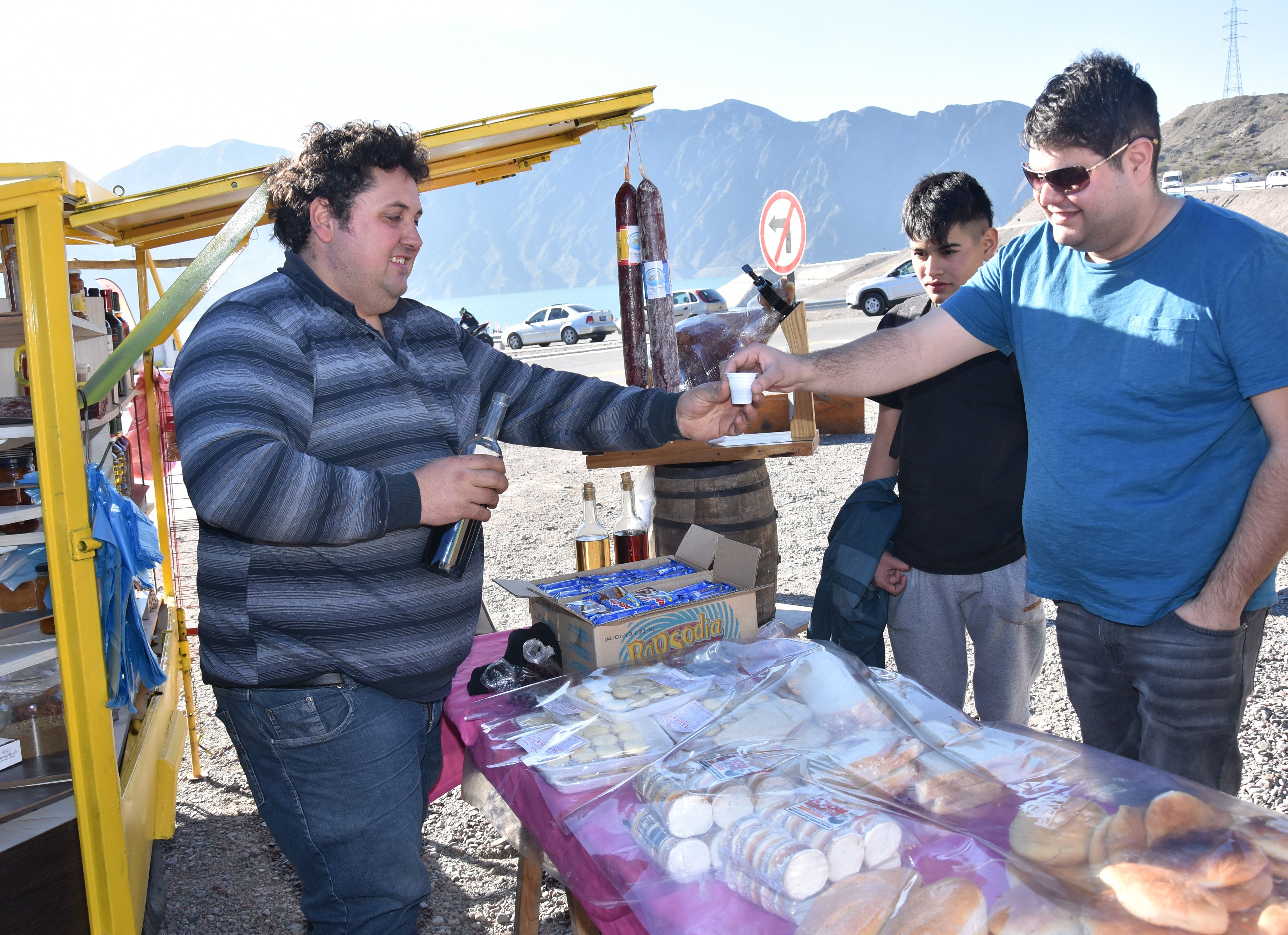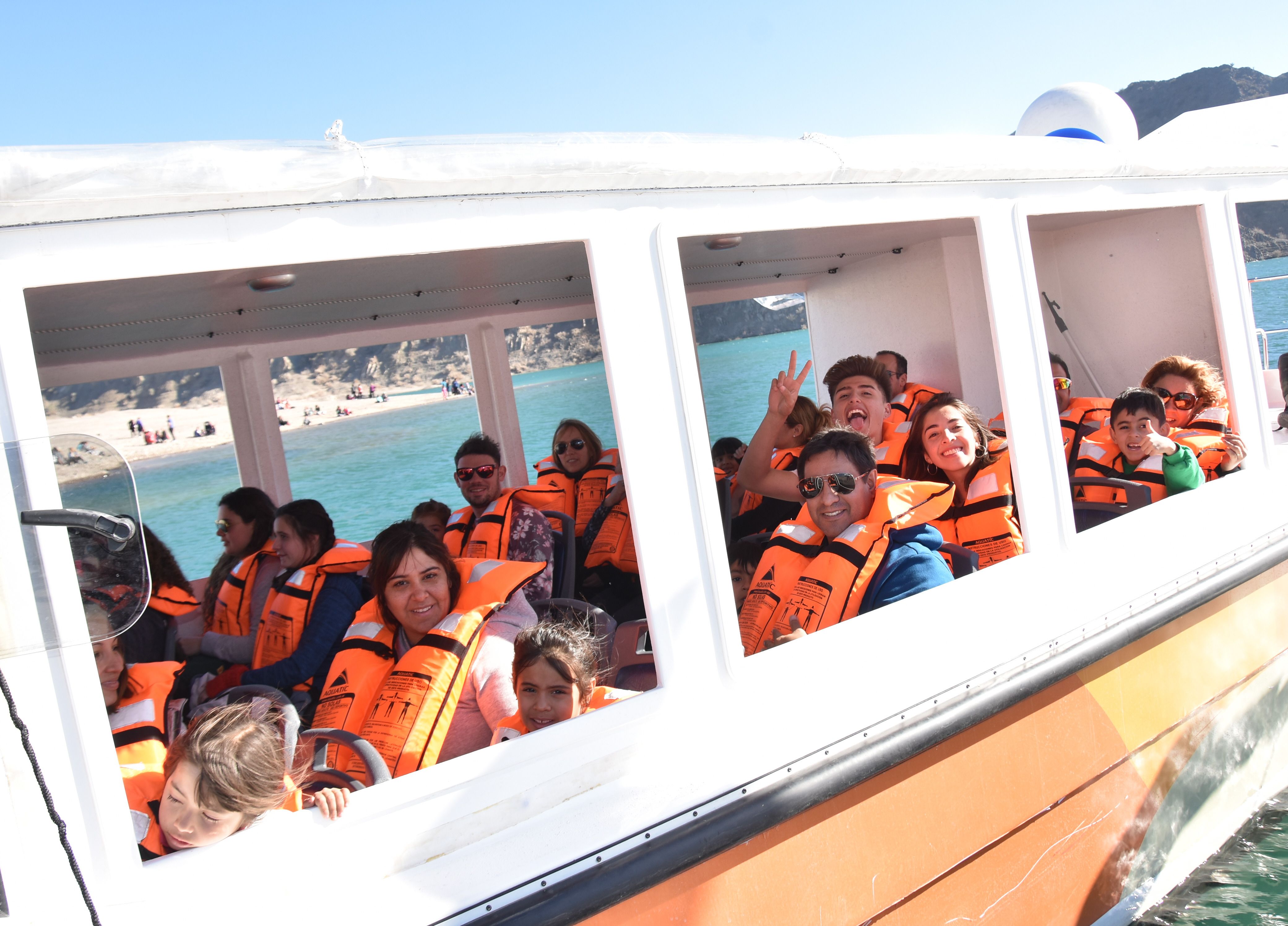 El embarcadero continúa siendo el destino preferido por la mayoría de los visitantes. Aunque sea para sacarse una foto cerca del catamarán que está por salir a dar una nueva vuelta de una hora por el embalse. Un turista de Buenos Aires pregunta en el stand de productos regionales por el precio de los tickets y la razón del color del agua, similar a una playa del litoral brasileño. Luego ve un cartel que indica que los tickets cuestan 200 pesos para adultos y 150 para menores. Los 7 viajes diarios -de 11 a 17- siempre tienen demanda.