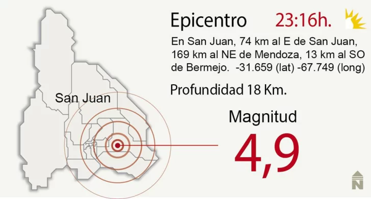 Según los datos brindados por el Instituto Nacional de Prevención Sísmica, el movimiento tuvo un epicentro a 74 kilómetros al Este de la ciudad de San Juan, en el departamento de Caucete.
