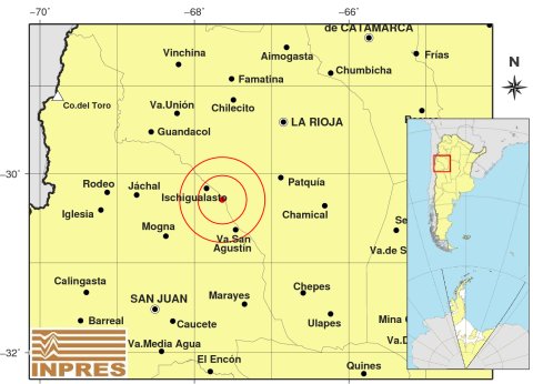 Según datos del Instituto Nacional de Prevención Sísmica (Inpres), el movimiento se registró a las 6:17 y tuvo epicentro 24 kilómetros al Sudeste de Ischigualasto.