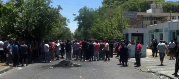 San Juan, 7 de diciembre.- La vigilia de un grupo de familiares y efectivos de la Policía de San Juan continúan con el reclamo salarial en las puertas del Comando Radioeléctrico.