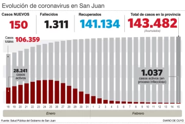 En cuanto a los infectados, hubo 150 nuevos casos (en la víspera fueron poco más de 40) y 428 test dieron negativo. El total de casos confirmados ahora es de 143.482 durante todo el proceso covid en la provincia.